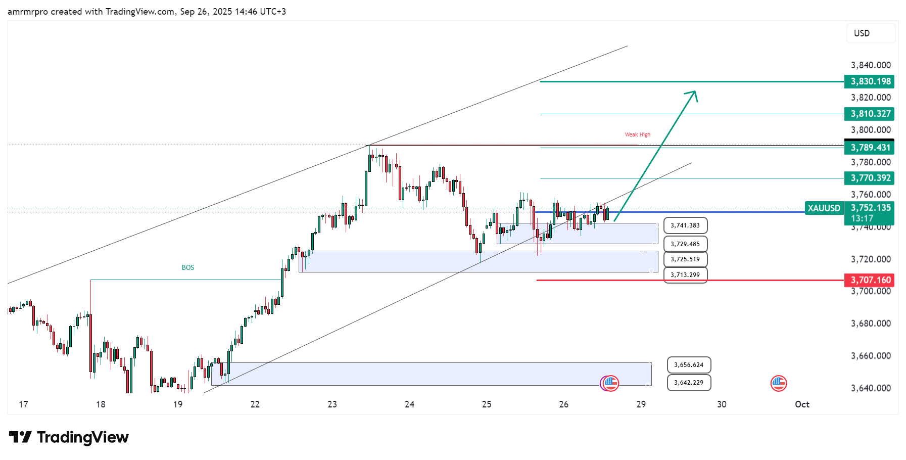 الدعم الرئيسي: 3,700 – 3,720 دولار (منطقة حيوية لإبقاء النظرة الصاعدة قائمة).
