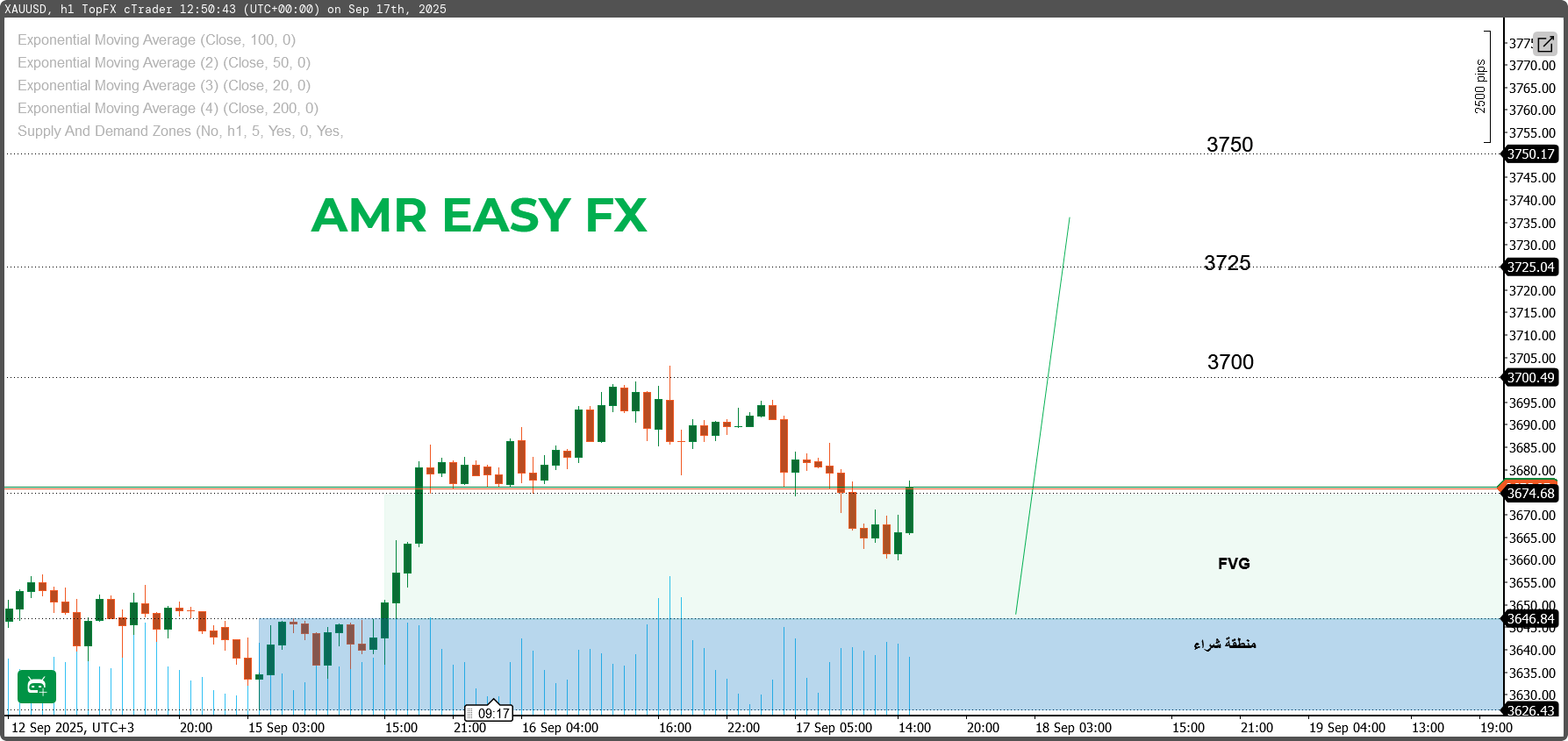 الذهب اختبر منطقة 3645 – 3625 وهي منطقة شراء رئيسية، وارتد منها بشكل جيد.