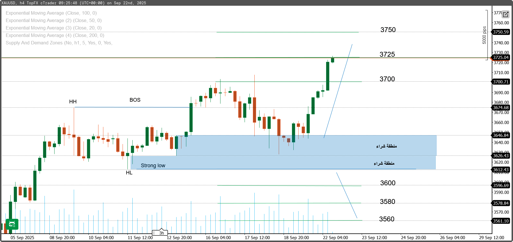 - وقف الخسارة: كسر 3680 بشمعة 1H