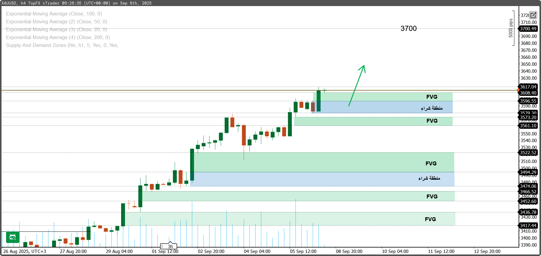 | 3596 – 3608$ | دعم قصير المدى | شراء قصير | FVG قصير المدى |