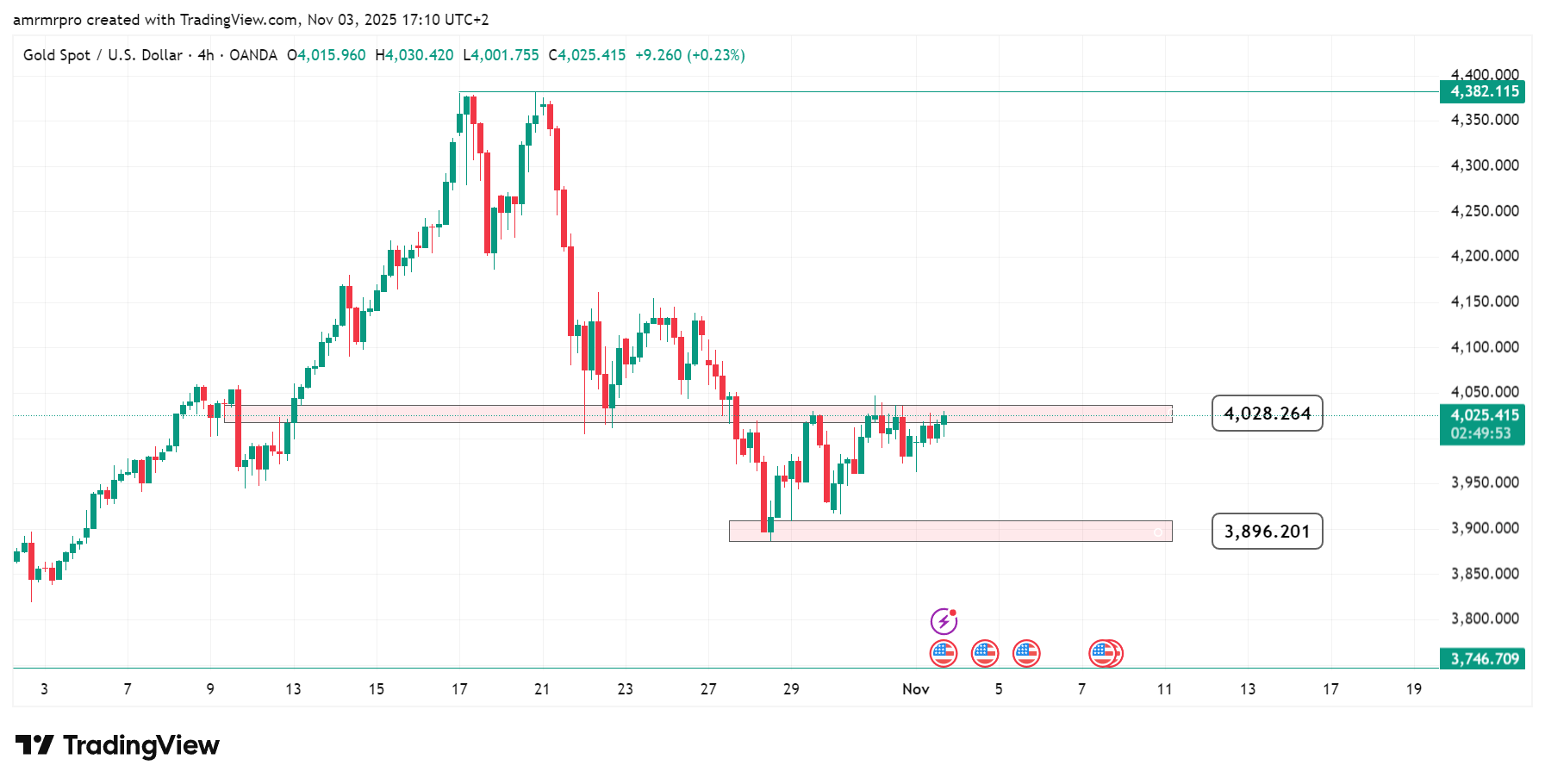 السعر الحالي يدور حول 4023 دولارًا، ما يعكس حالة من الترقب لدى المتداولين في انتظار محفز اقتصادي جديد.