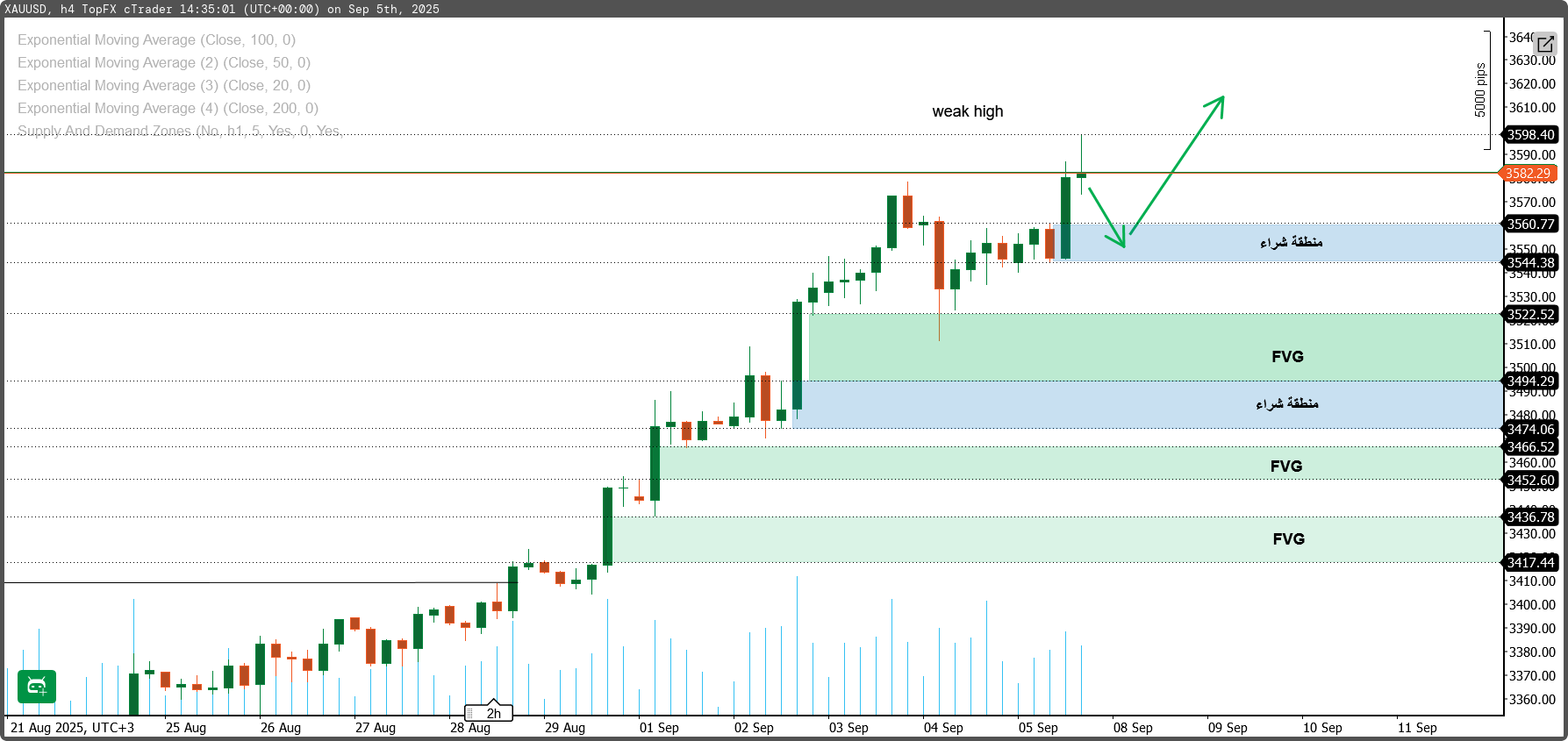 للشراء من 3560 – 3545 → وقف الخسارة أسفل 3535.