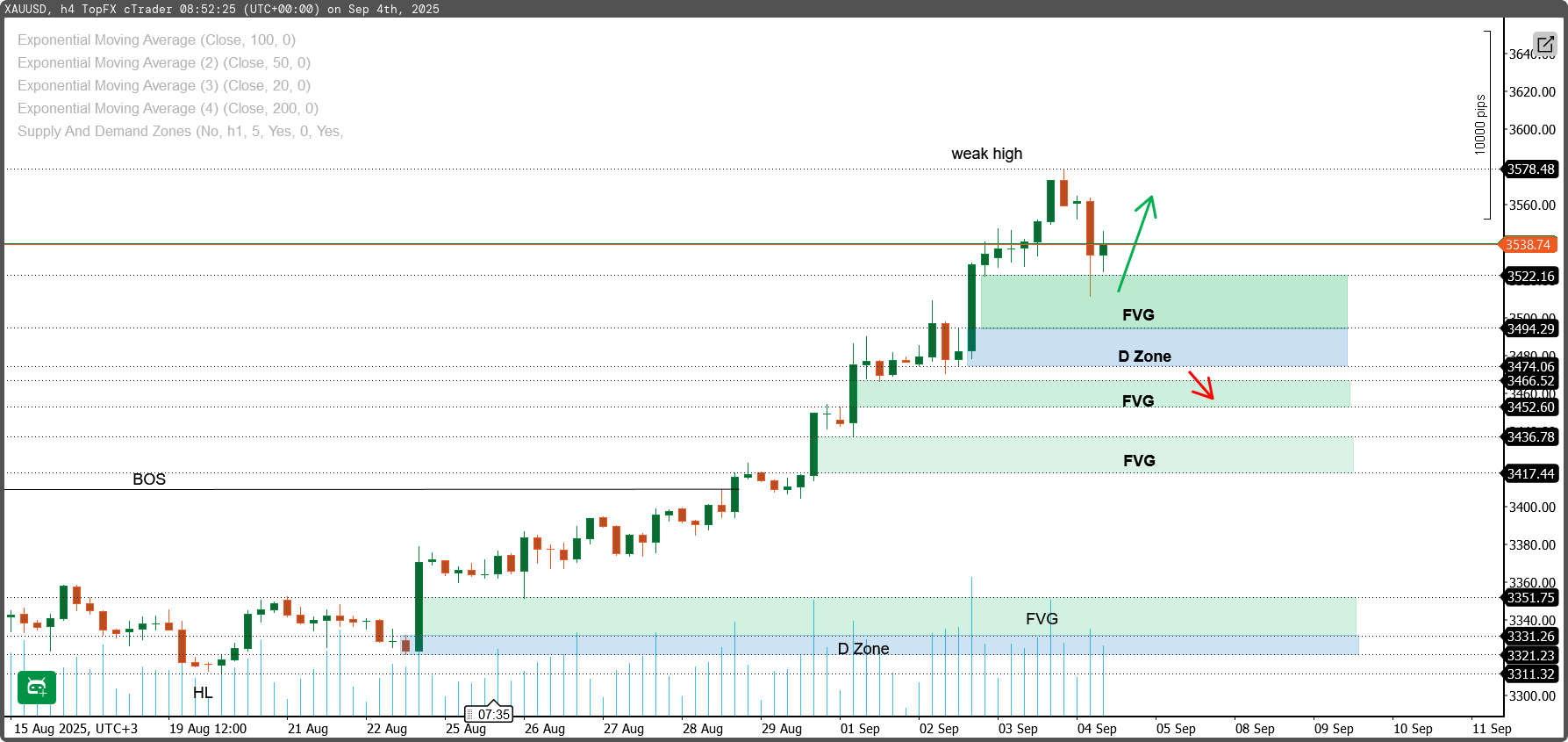 • 3542 → القمة الحالية بعد الارتداد.