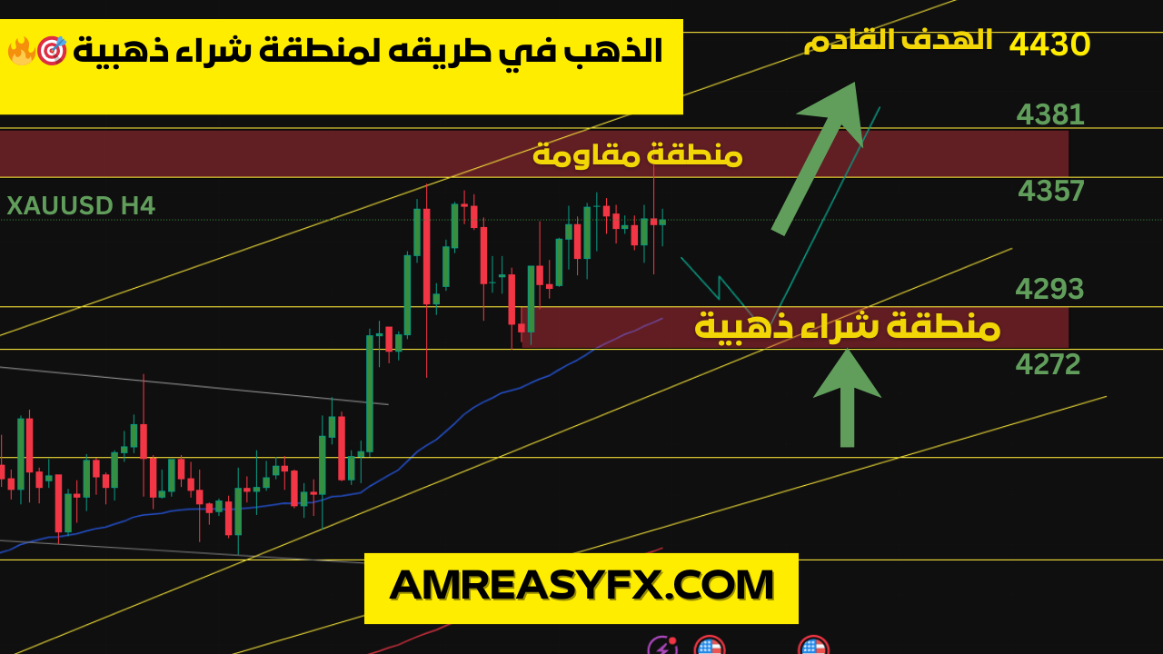 • 4293 دولار: وهي نقطة بداية منطقة الطلب التي تمثل دعماً نفسياً وفنياً قوياً.